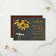 This Black Eyed Susan wildflower chalkboard style wedding save the date card features the image of 3 Black Eyed Susan flowers, tied together with a delicate white ribbon, situated to the left on the front of the card - the back of the card is a customisable solid colour, currently mahogany - by katz_d_zynes
