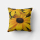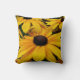 This striking throw pillow will brighten your day with a huge bouquet of brilliant golden yellow Black-eyed Susan blossoms on a dark background.