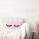 Pair of closed black eyelashes on pink and white gingham pattern.