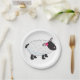 A black faced sheep with lots of white wool and a flower in its hair. This design looks really effective on these Paper Plates