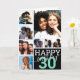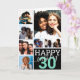This cool and cute happy birthday greeting card is perfect for any friend or family member. It features eight customizable photograph pictures with the quote, "Happy Birthday," in white on top of a bright mint green "30" (which can be changed to any age) and black color block square. It's modern, fun, and a great way to let wish your friend or family member a great birthday.