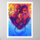 Black Family Love is a painting of a black man with his arms around his wife and child creating an image of a heart portraying family unity and love.