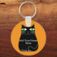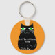 Black Fat Cat With Green Eyes Custom Text Key Ring