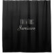 This elegant shower curtain has a black background in a faux textured burlap pattern. Text is very pale grey. A simple yet elegant home decor gift for an engagement, wedding, or comittment ceremony. All Rights Reserved © 2015 Alan & Marcia Socolik.