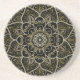 Black Faux Glitter And Gold Floral Mandala Coaster