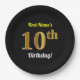 Black, Faux Gold 10th Birthday + Custom Name Paper Plate