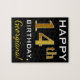 Black, Faux Gold 14th Birthday + Custom Name Jigsaw Puzzle