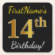 Black, Faux Gold 14th Birthday + Custom Name Square Paper Coaster