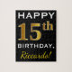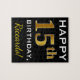 Black, Faux Gold 15th Birthday + Custom Name Jigsaw Puzzle