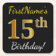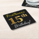 Black, Faux Gold 15th Birthday + Custom Name Square Paper Coaster