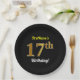 Black, Faux Gold 17th Birthday + Custom Name Paper Plate