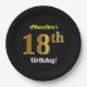 Black, Faux Gold 18th Birthday + Custom Name Paper Plate