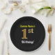Black, Faux Gold 1st Birthday + Custom Name Paper Plate