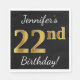 Black, Faux Gold 22nd Birthday + Custom Name Napkin