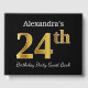 Black, Faux Gold 24th Birthday Party + Custom Name Guest Book