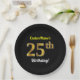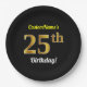 Black, Faux Gold 25th Birthday + Custom Name Paper Plate