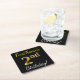 Black, Faux Gold 2nd Birthday + Custom Name Square Paper Coaster
