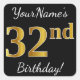 Black, Faux Gold 32nd Birthday + Custom Name Square Sticker