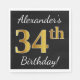 Black, Faux Gold 34th Birthday + Custom Name Napkin