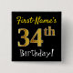 Black, Faux Gold 34th Birthday, With Custom Name 15 Cm Square Badge