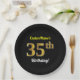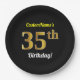 Black, Faux Gold 35th Birthday + Custom Name Paper Plate