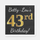 Black, Faux Gold 43rd Birthday + Custom Name Napkin