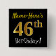 Black, Faux Gold 46th Birthday, With Custom Name 15 Cm Square Badge