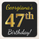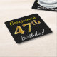 Black, Faux Gold 47th Birthday + Custom Name Square Paper Coaster