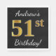Black, Faux Gold 51st Birthday + Custom Name Napkin