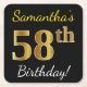 Black, Faux Gold 58th Birthday + Custom Name Square Paper Coaster