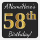 Black, Faux Gold 58th Birthday + Custom Name Square Sticker