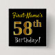Black, Faux Gold 58th Birthday, With Custom Name 15 Cm Square Badge