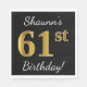 Black, Faux Gold 61st Birthday + Custom Name Napkin
