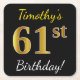 Black, Faux Gold 61st Birthday + Custom Name Square Paper Coaster