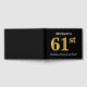 This guest book design features the ordinal number "61st" with a faux/imitation gold-like appearance. It also features a personalised name, and a black coloured background. It could be used at a party for somebody celebrating their sixty first birthday. [~Z0000054]