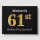 Black, Faux Gold 61st Birthday Party + Custom Name Guest Book