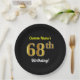 Black, Faux Gold 68th Birthday + Custom Name Paper Plate