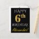 Black, Faux Gold 6th Birthday + Custom Name Postcard