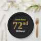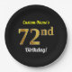 Black, Faux Gold 72nd Birthday + Custom Name Paper Plate