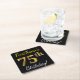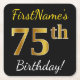Black, Faux Gold 75th Birthday + Custom Name Square Paper Coaster