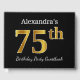 Black, Faux Gold 75th Birthday Party + Custom Name Guest Book