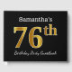Black, Faux Gold 76th Birthday Party + Custom Name Guest Book