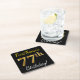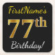 Black, Faux Gold 77th Birthday + Custom Name Square Paper Coaster