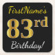 Black, Faux Gold 83rd Birthday + Custom Name Square Paper Coaster