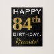Black, Faux Gold 84th Birthday + Custom Name Jigsaw Puzzle