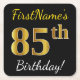 Black, Faux Gold 85th Birthday + Custom Name Square Paper Coaster