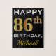 Black, Faux Gold 86th Birthday + Custom Name Jigsaw Puzzle