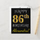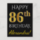 Black, Faux Gold 86th Birthday + Custom Name Postcard