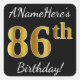 Black, Faux Gold 86th Birthday + Custom Name Square Sticker