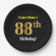Black, Faux Gold 88th Birthday + Custom Name Paper Plate